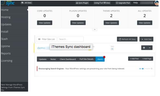 iThemes Sync comes with a free version that is limited to manage up to 10 websites. You can also manage the WordPress updates from a single dashboard. Moreover, the free version of this plugin allows you to install WordPress themes and plugins manually.